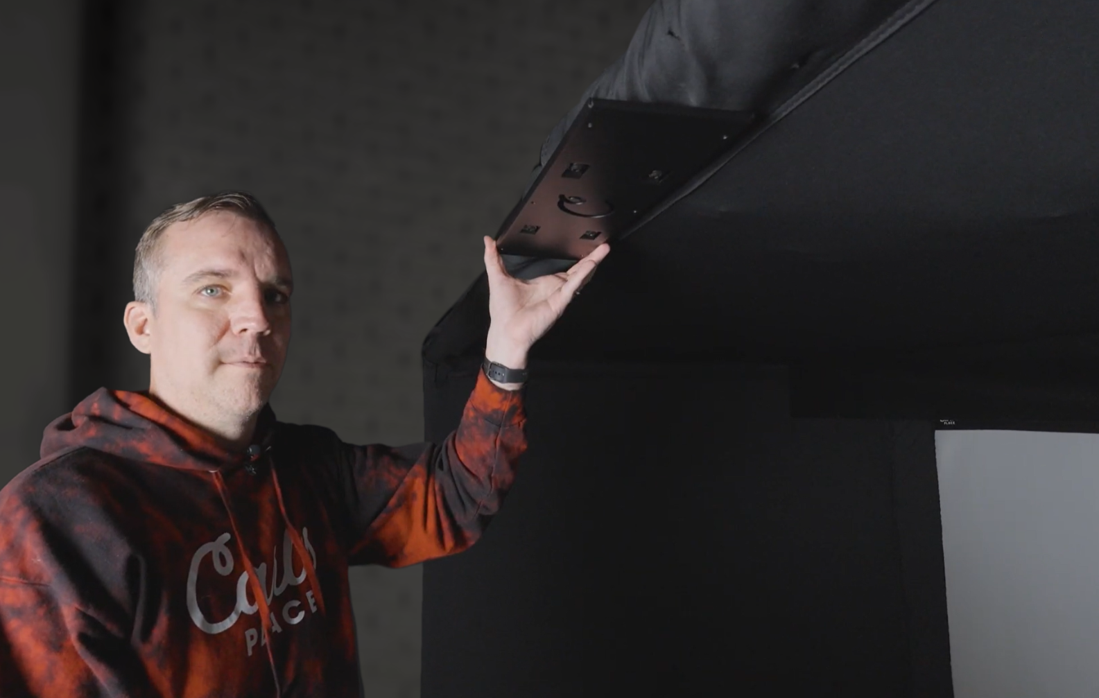 The crossbar sits close to the ceiling and is the perfect anchor point for cords running to overhead launch monitors, cameras, or lights. Just avoid over-tightening zip ties, and make sure to leave a little slack where movement or disconnection might be needed.