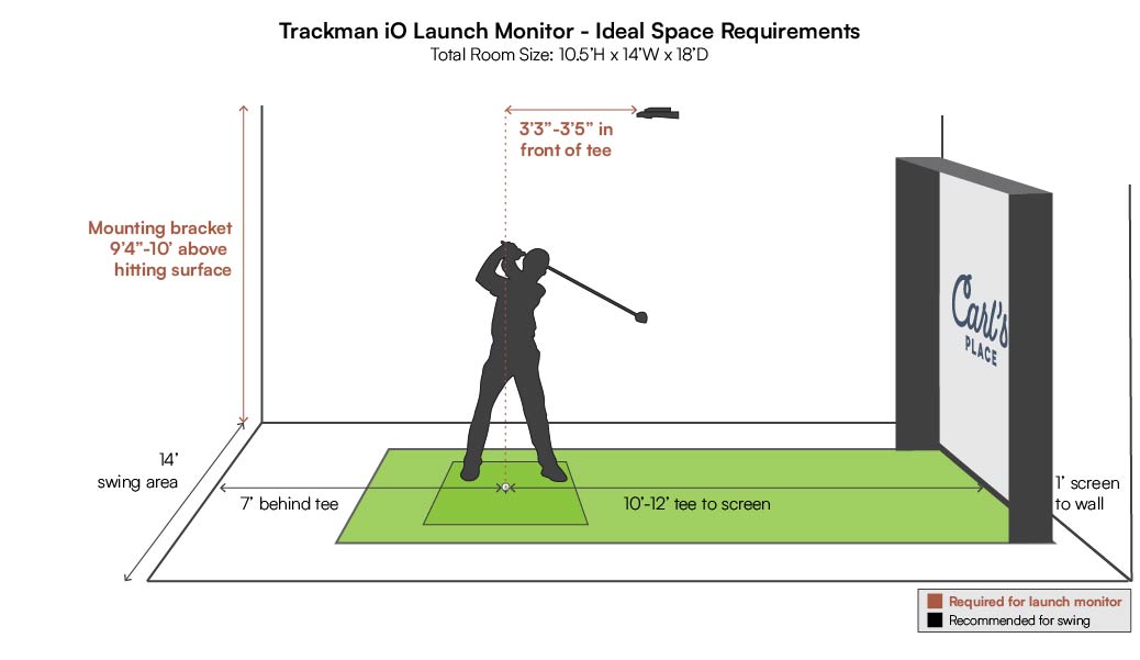 - Room depth: From the wall behind you to the wall or impact screen in front of you. This is critical for radar units that sit behind the golfer and need ball flight.