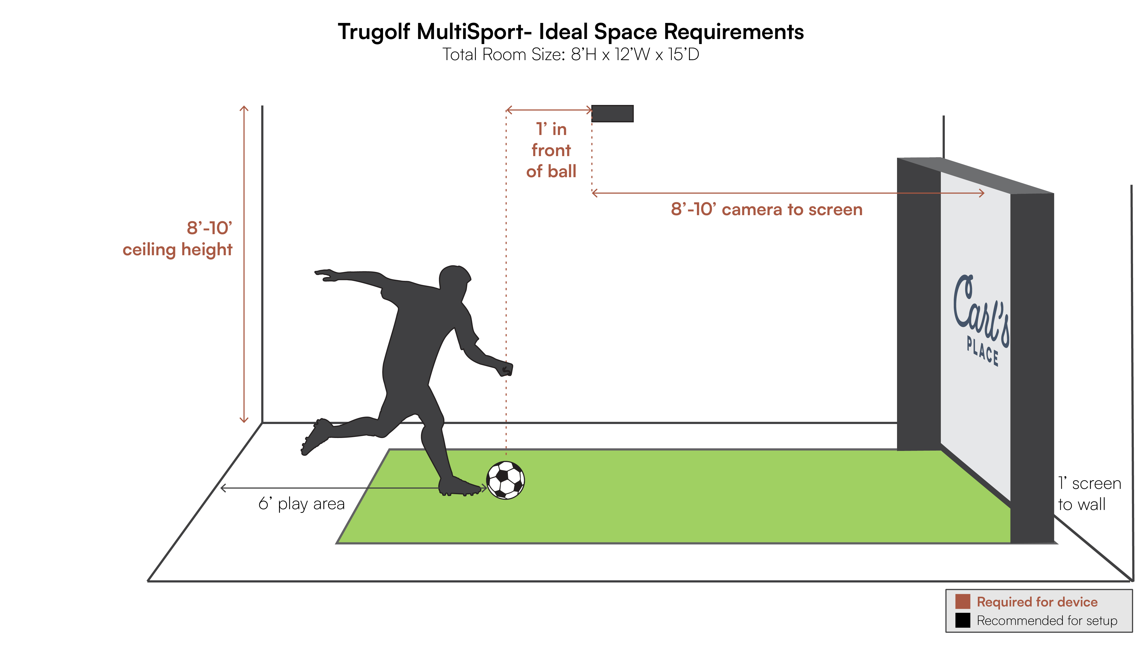 Now match those dimensions to how you plan to use the space. Each launch monitor type “uses” the room differently: